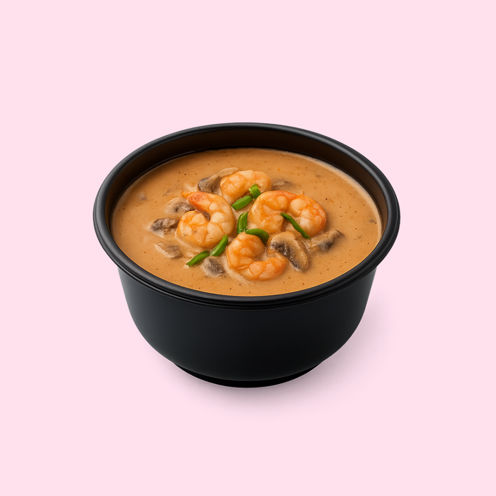 Вода, Кокосовое молоко, хондаши, шампиньоны, креветка, лук зелёный, паста том ям, корень имбиря, перец чили, соль, рис, мицукан, сахар, комбу