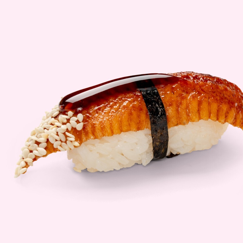 Рис, мицукан, сахар, комбу, соль, угорь, соус унаги, кунжут белый