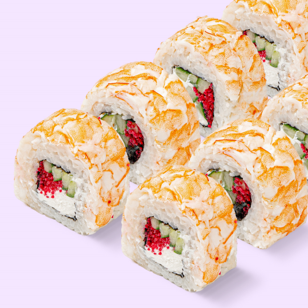 Рис, мицукан, сахар, комбу, соль, нори, сыр сливочный, огурец, креветка, тобико